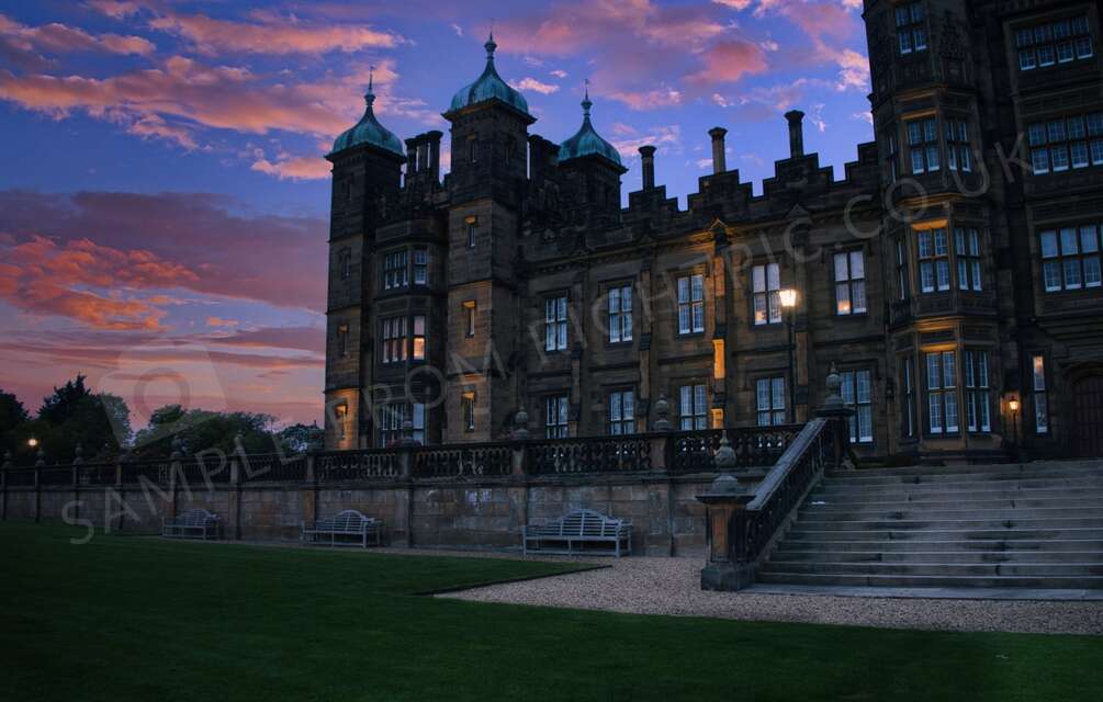 A dusk photograph of The Playfair building in Edinburgh's West End, near Haymarket.